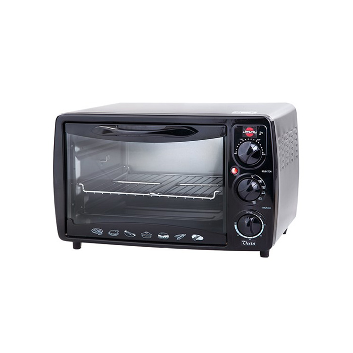 آون توستر پارس خزر مدل وستا یکی از آون های زیبا و کارآمد این شرکت است. در این محصول بدنه خارجی از جنس استیل با پوشش ضد لک و بدنه داخلی فلزی با پوشش آلومینیوم ساخته شده است. نشانگر روشن و خاموش بودن محصول روی دستگاه دیده می شود. آون توستر پارس خزر مدل وستا مجهز به سیستم جوجه گردان ساعتگرد و پاد ساعتگرد است تا پخت جوجه به بهترین شکل انجام گیرد. در دستگاه دارای 2 قطعه ضربه گیر از جنس سیلیکون می باشد تا صدای ضربه نداشته و شیشه نشکند. آون توستر دارای قابلیت استفاده همزمان و مجزای جوجه گردان و گردش هوای گرم است. کلید تنظیم حرارت در 6 حالت وجود دارد. سینی طبخ غذا و توری کباب پز نیز همراه این آون توستر عرضه می شود. پیچ های سه گانه تنظیم دستگاه از جنس مرغوبی ساخته شده اند و تنظیم دستگاه به راحتی انجام می شود. مدل وستا مجهز به 4 المنت میله ای (2 عدد بالا/2 عدد پایین) است که باعث افزایش بازدهی پخت دستگاه می شود. پارس خزر تولید و عرضه کننده لوازم خانگی برقی است که موفقیت های بسیاری در به دست آوردن رضایت مشتریان وفادار خود داشته است.